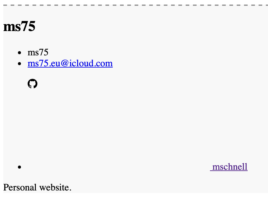 <li class="p-name">Markus Schnell</li><li><a class="u-email" href="mailto:ms75.eu@icloud.com">ms75.eu@icloud.com</a></li></ul>